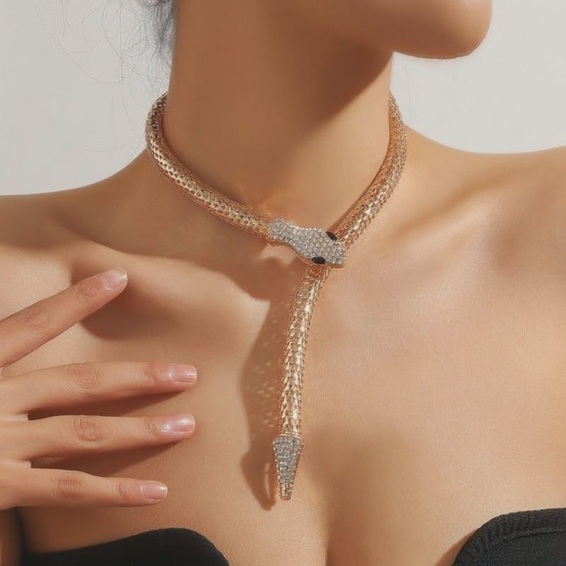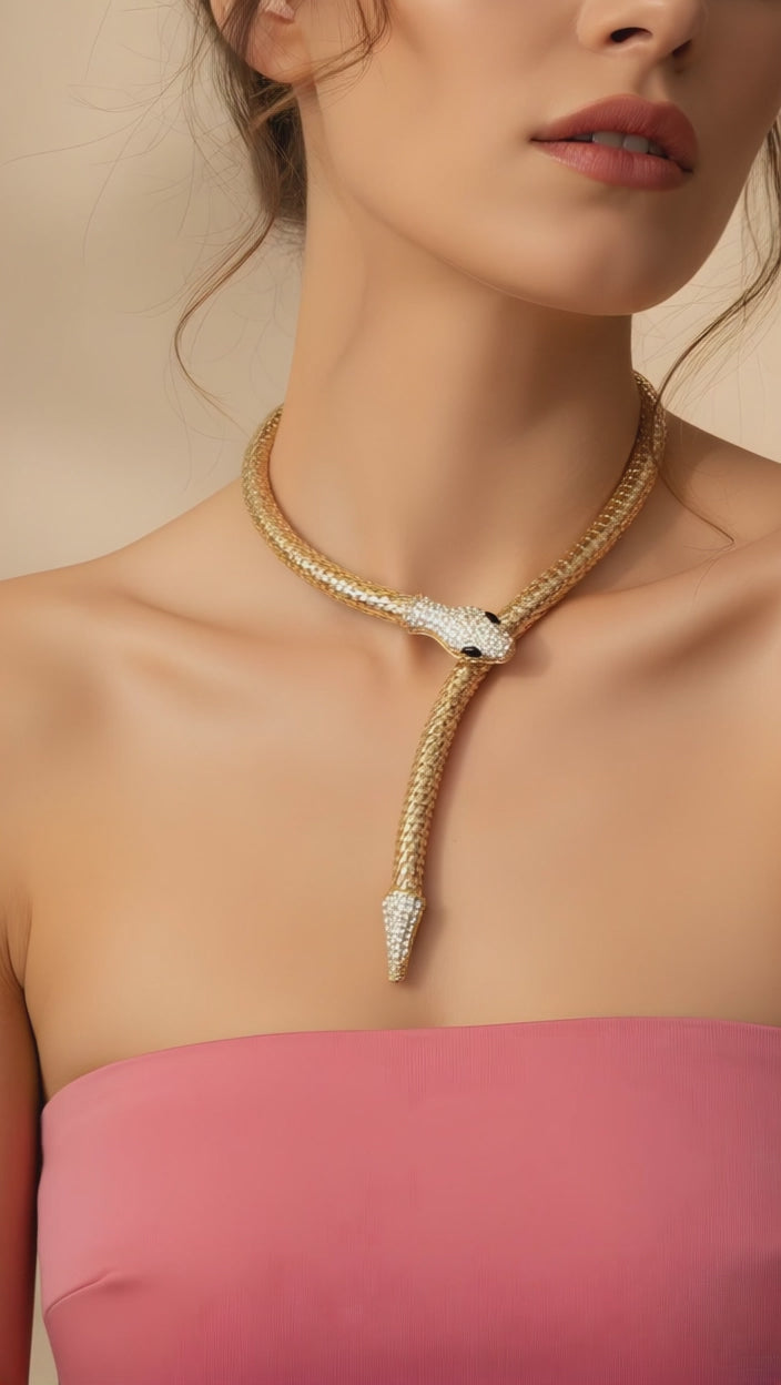 Venom Noir: Gem-Encrusted Gold Snake Necklace